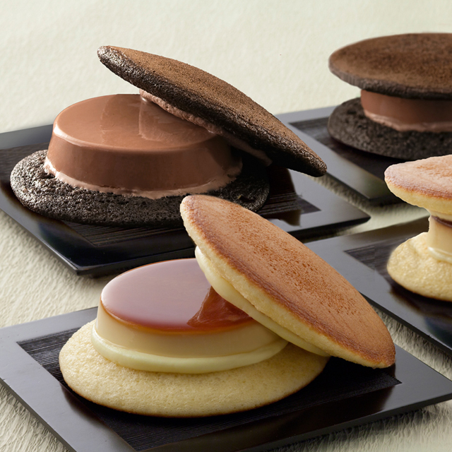 阿蘇小国・ジャージー牛乳入りのコく深いプリンに、ほろ苦いカラメルソースでアクセント。ふんわりパンケーキ風のどら焼きでカスタードクリームとあわせてサンドした、大人気商品の「ぷりんどら」と、ココア×竹炭でふっくら焼き上げた黒どら皮に、なめらかなショコラプリンと菊家特製のショコラクリームをサンドした濃厚ながらやさしい甘さの新発売「ぷりんどら ショコラ」を詰め合わせた贅沢なぷりんどら詰め合わせセットです。
